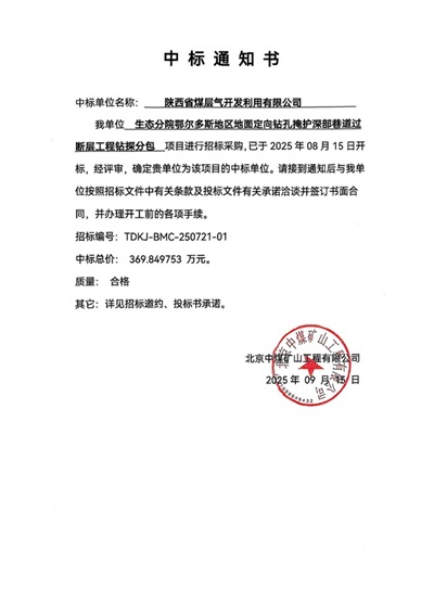 - 鉆井分公司中標張家峁水文地質(zhì)探查工程2025-09-24